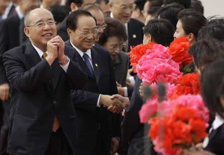He was welcomed at the Beijing Capital International Airport by Chen Yunlin, director of the Taiwan Work Office of the Communist Party of China (CPC) Central Committee, Zheng Lizhong, executive deputy director of the office, and Wang Anshun, CPC Beijing Municipal Committee deputy secretary.