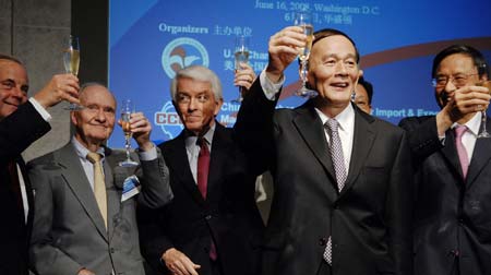He praised political leaders in Missouri for their firm resistance to trade protectionism and said it is the correct position that represents the interests of the people of the US state. After Wang arrived in Washington later in the afternoon, he attended a contract-signing ceremony in the US Chamber of Commerce. He told representatives from both US and Chinese companies that cooperation between Chinese and US companies serves as the cornerstone for China-US economic and trade relations, and is also the foundation of the China-US Strategic Economic Dialogue, or SED. Wang and US Treasury Secretary Henry Paulson will co-chair the fourth round of the SED between June 17 and 18 at the US Naval Academy in Annapolis, Maryland, about a 30-minute drive from Washington. Wang is attending the meeting as the special representative of Chinese President Hu Jintao, and Paulson as special representative of US President George W. Bush. Wang's entourage includes ministers and other senior officials from related departments of China's State Council. Jointly launched by President Hu and President Bush in September 2006, the dialogue is held twice a year, alternating between the two countries. The previous meeting was held in December 2007 in Beijing, China. |