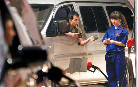 A customer pays a filling station attendant in Beijing. [Agencies]