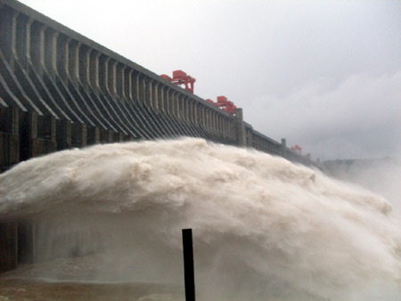 The inflow was 34,500 cubic meters per second at 8 a.m. Saturday, up from 27,000 six hours before. Operators opened six spillways to discharge water of 11,000 cubic meters per second, said Zhao Yunfa, a director of the communication center of China’s largest hydropower project. The discharges since Friday night had lowered the water level from 145.91 to 145.78 meters as of 1 pm. It was the first time this year that the reservoir had performed its flood-control function. The discharging would continue as more heavy rains were expected on the upper reaches of the Yangtze River, Zhao said. The world's largest dam, 2,309 meters long and 185 meters high, is expected to help minimize damage caused by floods that might occur only once every 1,000 years. Completed in May 2006, it passed its first flood control test last year. The US$22.5-billion project was launched in 1993. Its 26 turbo-generators are designed to produce 85 billion kwh of electricity a year after their installation is completed at the end of this year. So far, 24 turbines have been put into operation and the project has produced 236 billion kwh of electricity since 2003. |