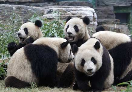 Young giant pandas are seen in their enclosure at Beijing Zoo July 10, 2008. Eight giant pandas are part of a special exhibit at the zoo for the upcoming Beijing 2008 Olympic Games. [Agencies]