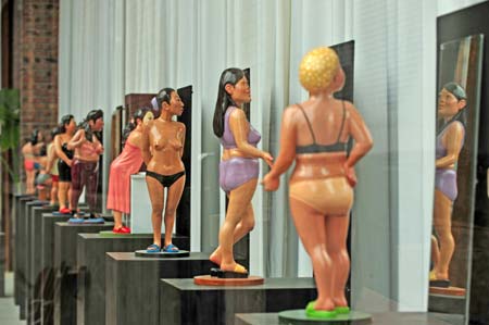 Photo taken on August 5, 2008 shows sculptures displayed at 798 Art Zone in Beijing, capital of China. [Xinhua]