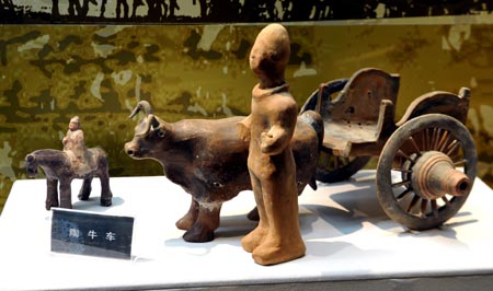 An earthen ox cart is shown at the Ningxia Transportation Museum in Yinchuan, capital of northwest China's Ningxia Hui Autonomous Region, August 22, 2008. [Xinhua]