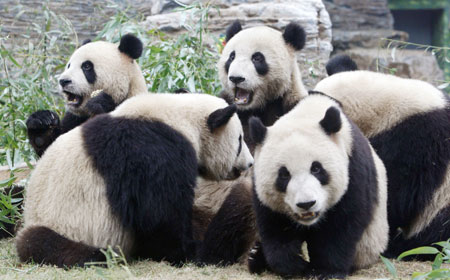 "Their births were not so easy," Zhang said. "They are the joint efforts of the painstaking work of the mothers, scientific researchers and quake relief workers." About 10 pregnant pandas from Wolong were transferred to the Ya'an base in Sichuan as the massive quake, which killed nearly 70,000 people, caused great damage to their habitat. Researchers carried out psychological comfort on the pregnant mothers who were traumatized by the quake, according to Huang Yan, a Wolong center engineer. At July 6, Giant panda Guo Guo delivered twin pandas, becoming the first panda to bear cubs since the disaster. She was also the first panda to give birth around the globe this year. On Saturday, a 8-year-old giant panda named "Cheng Ji" or "Achievement" in Chengdu breeding base gave birth to twin cubs at 14:24 PM and 15:17 PM They were the latest members for China's Sichuan panda family, who then were named after two of the Games' mascots as "Ying Ying" and "Ni Ni". They weighed 206 grams and 202 grams. Giant pandas, known for being sexually inactive, are among the world's most endangered animals due to shrinking habitat. There are about 1,590 pandas living in China's wild, mostly in Sichuan and the northwestern provinces of Shaanxi and Gansu. Through 2007, the number of captive bred giant pandas was 239 in the country. |