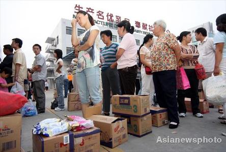 Consumers queue to claim for refunds at the Shijiazhuang-based headquarters of dairy producer Sanlu Group in North China's Hebei province on September 13, 2008. [Asianewsphoto]