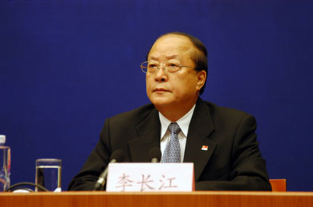 Li Changjiang, head of the State Administration of Quality Supervision, Inspection and Quarantine (AQSIQ) speaks during a press conference held in Beijing September 17, 2008. [Xinhua]