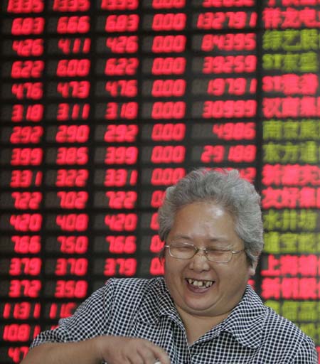 A woman stands in front of an electronic board at a brokerage house in Shanghai September 19, 2008. Chinese stocks soared 9.46 percent on Friday in response to an unprecedented package of government measures to support the market, and as a rebound of equities overseas eased fears for the global financial system. [Agencies]