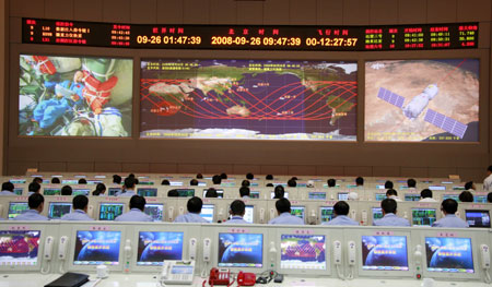 BEIJING -- China's third manned spacecraft Shenzhou VII completed orbit maneuver successfully at 4:04 a.m.(Beijing Time) on Friday, entering into the round orbit 343 kilometers above the earth. The maneuver was executed under the precise control of the Beijing Aerospace Control Center (BACC). Physical condition of the three astronauts including their body temperature and blood pressure all stayed normal. The orbital adjustment, which helped the spaceship move into a round orbit from an oval one, is vital to ensure the vessel's normal operation and landing in the targeted area. Before that, the spaceship was flying in an oval orbit with a perigee altitude of 200 kilometers and an apogee altitude of 350 kilometers. The three astronauts onboard talked to the ground control center in Beijing at 0:16 a.m. and briefed on their working and physical condition. The maneuver started at 4:03 a.m. as the orange flame was gushed out of the tail of the vessel, which began to pick up speedat the time. The astronauts were fastened in their seats with calm and kept close watch on the data displayed on the instrument board. Sixty-four seconds later, the spaceship was back to smooth flight. Zhai Zhigang reported to the ground: "The instrument board data showed the maneuver was completed." BACC later proved the result after calculation, and said the maneuver had realized its target. The astronauts are scheduled to assemble and test their extravehicular (EVA) suits in the orbital module later Friday, to prepare for China's unprecedented spacewalk that was planned on Saturday. |