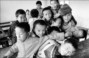 The school altogether has 10 students in two grades and Wu is the only teacher. The students sit on either side of the same classroom according to their grade. On a small and worn-out blackboard, Wu writes down the content of all the courses the students take. "Without Wu, the children here would drop out of school," a villager says. "To get to the nearest formal primary school, one has to walk on a small road by a cliff and cross four mountains. No parent will let his child do that." What makes Wu most proud is that seven of his students over the past 24 years have gone on to college, and are now teachers, doctors and government officials. Wu is now teaching some of his old students' children. However, Wu's house is the most shabby one in the village. It is more than 100 years old, and has been handed down by his ancestors. The pillars are slanted and the house sways whenever there is a strong wind. The only item of value is a 11-inch black-and-white TV set, which was also given by his father-in-law. "The salary of a temporary teacher is too low. As a man, I can't even support my parents, wife and children," Wu says. He has mulled over his decision to be a teacher many times in the past 24 years. In 2004, he even left the school to work as a bricklayer in the town of Fenghuang, but the village head and some of the villagers soon came to find him. "We are cheeky to come to you, but we can't find another teacher. Every day the children are waiting for you. Can you come back?" the village head begged him. Wu couldn't sleep that night. The next day, he decided to go home. When he arrived at the village it was already dark, but many villagers were waiting for him outside the village with torches. As he was escorted back into the village, the joyous villagers set off firecrackers. |