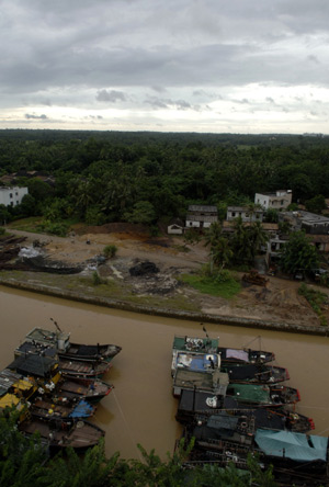 Fishing boats are seen at a harbor of Wenchang, South China's Hainan Province, October 4, 2008. Tropical storm Higos leaves Hainan and will make landfall in Guangdong Province on Saturday evening. Higos landed at 10:15 p.m. in Longlou Town of Wenchang City on Friday evening.[Xinhua]