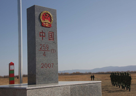 Updated: 2008-10-14 16:31 FUYUAN, Heilongjiang -- China and Russia held a ceremony at Heixiazi Island on Tuesday to unveil the boundary markers for eastern section of China-Russia boundary.