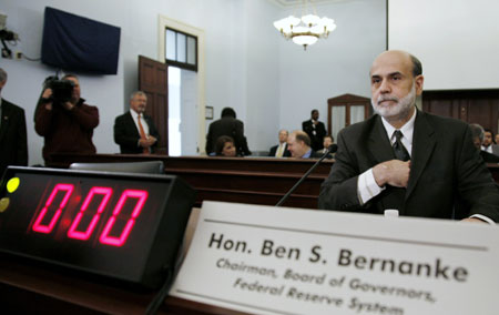 US Federal Reserve Chairman Ben Bernanke participates in a House hearing on "Economic Recovery - Options and Challenges" on Capitol Hill in Washington, October 20, 2008. [Agencies]