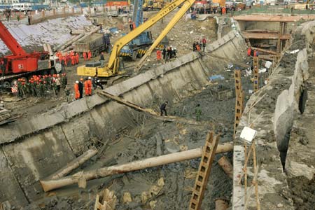 "I just want to get my wages and go home as soon as possible." He said he shudders when he thinks back to the moment the cave-in happened, as he was working underground. "In the blink of an eye, concrete, sand and steel pipes all came crashing down. "There was total chaos both above and below ground. We were paralyzed with fear," he said. "I think about what would have happened to my family if I had lost my life. "I have elderly parents, and young children. What would they live on?" He and his workmates have considering what to do next, he said. "I want to go home and spend some time with my family. If I get another job, it has to be something safer." Fang Richeng, from Chun'an county, Zhejiang province, was working above ground at the time of the tunnel collapse. The 35-year-old said he had been at the site for less than a month; before that he had been building houses. "I get 5 yuan (73 cents) more a day working here than I do building houses," he said. "I wanted to make some more money, but I didn't expect to meet with disaster. "We're paid 40 yuan a day, but that's nothing compared to the risk we're taking," Fang said. He said that after he gets his wages, he will look for a new job building houses. Local authorities said Tuesday they are still working on the details of how much compensation will be paid to the families of the men killed in the cave-in, but did not say what would happen to those who survived. The collapsed tunnel was part of a 69-km underground rail project being built by China Railway Construction Group Co Ltd. The $5.1 billion project was launched in March of last year and is due for completion in 2011, the Xinhua News Agency reported Tuesday. Rescue teams were Tuesday continuing to search for the 12 missing men. Zi Baocheng, a spokesman for China Railway, said the efforts of the rescuers have been hampered by problems with digging machines, which have struggled to handle the deeply compacted earth. "They have been forced to dig by hand, which takes longer," he said without saying when he thought the work might be completed. Meanwhile, 11 of the 24 men rescued from the tunnel and taken to hospital have been discharged, the Xinhua report said. Sun Hui, deputy chief of medical services at Zhejiang Xiaoshan Hospital, which is treating eight of the injured, said four are in a stable condition, but four others have been left traumatized by their ordeals. "They are experiencing severe mood swings caused by fear and despair. "They cry a lot and are suffering from insomnia," he told China Daily. |