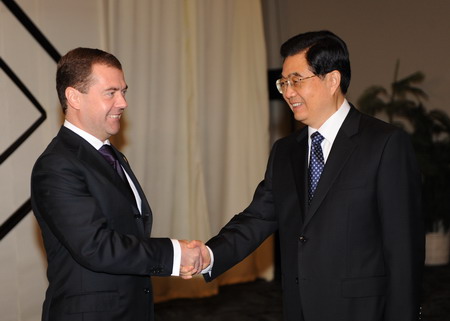 Updated: 2008-11-24 06:43 LIMA -- Chinese President Hu Jintao said Sunday that China and Russia should strengthen strategic coordination at a time when the global political and economic structures are undergoing the most profound changes since the end of the Cold War. Hu made the remarks at a meeting with his Russian counterpart Dmitry Medvedev on the sidelines of the 16th Economic Leaders' Meeting of the Asia-Pacific Economic Cooperation (APEC) forum in Lima, Peru. China and Russia should make concerted efforts to overcome the impact of the ongoing global financial crisis, maintain the sound momentum of their economic growth, and push ahead with reforms of the international financial system, the Chinese president said.