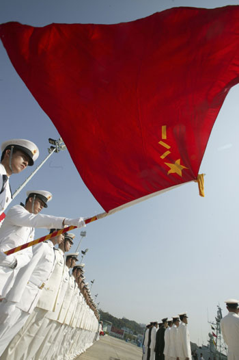 Naval troops of Chinese People's Liberation Army stand in attention at a parade ground during the annual rotation of military personnel in the Hong Kong Special Administrative Region November 25, 2008. [Agencies]