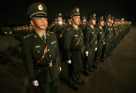 Ground forces of Chinese People's Liberation Army stand in their formation at a parade ground during the annual rotation of military personnel in the Hong Kong Special Administrative Region November 25, 2008. [Agencies]