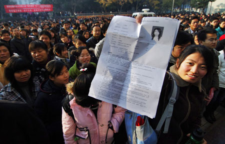 The mass rush and fierce competition to become civil servants among the country's young and educated is emblematic of Chinese people's increasing job-seeking tendency, that fielding a job in the government is once again esteemed by the society. Some economists say the trend is also a manifestation that people consider civil servants are "iron-bowl" jobs, that won't succumb to sudden economic upheavals like the current global economic crisis, which has hardened the bottom lines of many businesses, and led to tens of hundreds of laid-offs. To create a fair environment for the country's most intense exam, with 98 out of every 100 exam takers to have no chance for success, local educational departments, in cooperation with the police and radio frequency management officers, cracked down on exam cheaters, who would use wireless apparatus and the Internet technology, according to the Ministry of Human Resources and Social Security. Those who cheated in the exam would have "zero score" and would not be allowed to apply for similar exam in five years, the ministry said, adding relevant departments had paid great attention ensuring exam papers were not leaked before the exam. The 2009 central government recruitment plan offered only 13,500 positions, roughly the same with previous years. The results for the written exam would be announced in January and those who passed it would enter into the interview round. A government job was still considered a plum post for university graduates and other Chinese job-seekers as the global financial crisis prompted many private companies to cut the number of employees. Some believe that the economic and social status, welfare insurance and prestige associated with a government position in China have attracted more and more applicants, many young and knowledged. Positions with seismological bureaus across the country were also popular with this year's exam takers, according to the Modern Express, a newspaper based in southern Jiangsu Province, partly due to the devastating earthquake that struck southwestern Sichuanin May. The written test includes two sessions, the administrative aptitude test (AAT) in the morning and the essay test in the afternoon, before a more competitive interview at the beginning of 2009. China has been organizing civil servant recruitment examinations every year since 1994. |