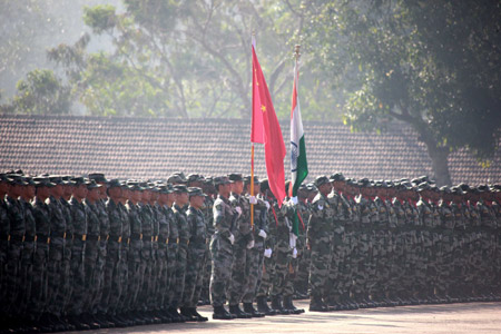 The China-India army joint anti-terrorism training, code-named "Hand in Hand 2008" is kicked off in India's Belgaum on December 6, 2008.[Xinhua]