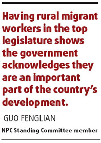 By Zhu Zhe (China Daily) Updated: 2008-02-29 07:25 Hu Xiaoyan got a text message on her mobile phone from a colleague on Jan 21. She keeps getting messages but that was special, for it said she had been chosen a deputy to the 11th National People's Congress (NPC). "I couldn't believe I had been elected," says the 34-year-old migrant worker in Guangdong. "I suddenly felt that I had a greater responsibility on my shoulders and that I needed to know more about many issues." The reason for Hu's surprise is not difficult to guess. The resident of Sichuan - the province that is one of the biggest sources of laborers - working in the country's manufacturing hub of Guangdong had become the first migrant worker to be elected an NPC deputy. "This is a new beginning for me," Hu says. "I'm only a junior high school graduate. But I'm confident of fulfilling my duties as a deputy." Hu, however, is not the only migrant worker deputy in the 11th NPC, which begins its first full session on Mar 5 this year. Giving her company in the NPC will be Zhu Xueqin from Shanghai and Hei Xinwen from Chongqing. Their candidacy was confirmed by the NPC Standing Committee yesterday, making them the first batch of "spokespersons" for the about 200 million migrant laborers in the country's top legislature. Grassroots workers and farmers, too, have a bigger say in the NPC this time. NPC Standing Committee figures released yesterday show the number of workers has doubled among the 2,987 new NPC deputies from those elected five years ago. The number of farmers has increased 70 percent. In contrast, the number of officials from provincial level government departments has dropped by at least 33 percent from five years ago. The numbers of representatives of women and ethnic minorities have also risen. Woman and ethnic minorities' deputies comprise 21.33 and 13.76 percent of the 11th NPC, both higher than the last congress. "Each one of the country's 56 ethnic groups has a representative," says NPC Standing Committee Vice-Chairman Sheng Huaren. The deputies this time are better educated, too. Figures show about half of them have a master's degree, an increase of 15 percent from the 10th NPC. The proportion of deputies in the 11th NPC is more scientific than before, Shen says. "The increase in the number of delegates from the frontlines of society means the NPC represents a wider section of people now," he says. NPC Standing Committee member Guo Fenglian says a wider representation would help NPC work better. "I'm glad to see the country's first migrant worker representative in the NPC," she says. "Having rural migrant workers in the top legislature shows the government acknowledges they are an important part of the country's development." NPC deputies from the grassroots level know more about social problems, and their participation in the legislature will ensure that decisions are more people-oriented. Apart from regular agenda such as reviewing the working reports of the central government, the Supreme People's Procuratorate and the Supreme People's Court, deputies will also discuss a report on the institutional restructuring of the State Council and elect the country's new leaders. (China Daily 02/29/2008 page7) |
