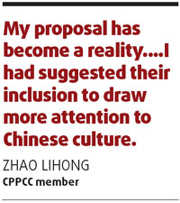 Zhao Lihong is visibly excited talking about a proposal he submitted to the first session of the seventh Chinese People's Political Consultative Conference (CPPCC) 20 years ago. As a member of the CPPCC National Committee, the Shanghai-based poet suggested the three traditional Chinese festivals, Tomb-Sweeping Day (Qingming), Dragon-Boat Festival and Mid-Autumn Festival, be added to the government's list of public holidays. A little more than two months ago, the central government declared the three festivals public holidays. "My proposal has become a reality," he says. "I had suggested their inclusion to draw more attention to Chinese culture." Zhao submitted the same proposal from 2003 to 2006 during which time more and more CPPCC members supported it, reflecting the general people's wish. Zhao is now the vice-chairman of Shanghai Writers' Association. He is a member of the 11th CPPCC National Committee, too, and has come to Beijing with some new proposals this time. "I have a few new proposals, and seeking support for literary magazines is one," he says. So what is a poet doing in the country's top political advisory body? He represents a section of society, arts and culture, in the government's "think tank". The CPPCC, in fact, has members from the Communist Party of China (CPC), non-Communist parties, people without any party affiliation, people's organizations and ethnic minorities. Compatriots from the Hong Kong and Macao special administrative regions and Taiwan, overseas-returned Chinese, professionals and public figures from all walks of life and academics, too, find place in it. It also has migrant workers' representatives. In short, every strata and section of society is represented in the 11th CPPCC National Committee, which began its first annual session yesterday, and most of its members are political or social figures, experts or scholars. With their knowledge, expertise and experience, the members serve as the key mechanism of multi-party cooperation and political consultation under the CPC's leadership. That makes the CPPCC the major manifestation of democracy. Holding political consultations, exercising democratic supervision, and participating in the discussions and handling of State affairs are the CPPCC's main functions. Political consultations cover the major principles and policies of the central and local governments, and matters of political, economic, social and cultural importance. Democratic supervision means supervision over the implementation of the Constitution, other laws, regulations and major policies through suggestions and criticisms. The members offer thousands of suggestions and proposals for innovative and enhanced government projects, actions and regulations. Their outstanding proposals include the scrapping of agriculture tax, protection of the rights of migrant workers and the physically challenged, as well as the government's role in generating employment. The last two recommendations have already become revised draft law. Members of the 10th CPPCC National Committee conducted field studies, too, with the messages summing up public opinion numbering about 6,600 during the five years. This was in addition to regular field reports. Deputy director of the social and legal committee of 10th CPPCC National Committee Wang Jianlun says the members visited about 30 small cities and counties in Beijing, and Zhejiang, Hebei and Heilongjiang provinces, and the Guangxi Zhuang, Xinjiang Uygur and Inner Mongolia autonomous regions in 2006 alone to get firsthand knowledge of the condition of the poor in the countryside. They prepared a report, suggesting the government set up a system to guarantee monetary subsistence to rural residents living below the national or local poverty line. In July last year, the State Council, the country's cabinet, announced the setting up of such a mechanism. Actually, more than 15 million rural poor in about 25 cities, provinces and autonomous regions had already got financial aid through pilot programs by then. Zhong Nanshan became a household name almost overnight for his courage, knowledge and skill five years ago. The medical practitioner deserves every bit of his fame because he led the nation's fight against SARS (severe acute respiratory syndrome). Zhong was well known among the country's medical circles for his research into and treatment of respiratory diseases, but he came into public limelight during those difficult times. His work and fame got him a seat in the 10th CPPCC National Committee. He and other members of the medical and pharmaceutical group that waged a war on SARS submitted 260 proposals on improving the food safety inspection system and speeding up food safety legislation in the five years that they served on the 10th CPPCC National Committee. Zhong is in Beijing this time, too. But he will attend the first session of the 11th National People's Congress (NPC) as a deputy from Guangdong province. In 2005, the 10th CPPCC subcommittee listed proposals for improving the food safety inspection system as one of its priorities. Also, it pushed for the formation of a joint research and investigation team with officials of the State Council's Legislative Affairs Office and the State Food and Drug Administration. From August to September of that year, the team traveled from Gansu to Sichuan to Chongqing municipality. It held eight seminars, visited food processing and production plants, supermarkets, wholesale markets, catering and inspection organizations and consulted a lot of local government reports. After the tiresome, but fruitful exercise, it filed a research report on issues and solutions to the country's food inspection system. "That report contributed greatly to the drafts of the Food Security Law referred by the NPC last December," says subcommittee vice-chairman Yang Zhenjie.