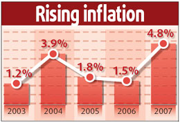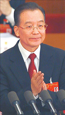 The government aims to keep the consumer price index (CPI) - a key gauge of inflation - at around 4.8 percent this year, the same level as last year, Wen said in his Government Work Report. Meanwhile, growth in the world's fourth-largest economy is expected to slow to 8 percent, Wen told nearly 3,000 deputies at the opening session of the National People's Congress, the top legislature, at the Great Hall of the People. "One major task in macroeconomic regulation this year is to prevent prices from rising too fast," Wen said. "We must take effective measures to increase supply while curbing excessive demand." The CPI surged to a 13-year high in 2007, surpassing the government's goal of 3 percent set at the beginning of the year. The price hikes were driven mainly by soaring food prices; and the nation's booming economy fuelled demand for commodities and goods ranging from oil to cement. "The targets set for this year suggest the government is fully aware of the difficulties and uncertainties the economy faces," said Zhao Xijun, a professor at Renmin University of China. "The measures put forward could prove effective in attaining the aim." The premier said the government will boost the production of daily necessities such as grain, vegetable oil and meat to stabilize prices. It will also tightly control grain exports and industrial use of grain, and increase imports of consumer products that are in short supply.