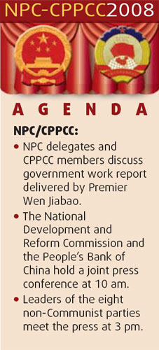 "Last year's price increases are still exerting a fairly strong influence making it difficult to bring them under control," said Wen, adding the government will follow a prudent fiscal policy and a tight monetary policy. China shifted its monetary stance from "prudent" to "tight" last year and moved to tighten credit. Also last year, the central bank raised the interest rate six times, and the ratio of cash commercial lenders need to set aside in deposits with the central bank 10 times. While the moves have helped rein in fixed asset investment, some analysts have suggested the government may need to loosen its austerity measures in the face of a slowing global economy. Wen said the government is keenly aware of the uncertainties at home and abroad, such as the subprime crisis in the US, worsening trade protectionism, as well as rising grain and oil prices in the international market. "We need to maintain an appropriate pace, focus and intensity in macroeconomic controls," Wen said. The inflation target is achievable, provided there are no additional negative supply shocks, said Sun Mingchun, an economist with Lehman Brothers. Sun expects the CPI to ease to 4.4 percent this year from 4.8 percent last year as food price rises ease in the second half of the year. Most analysts agree food price hikes are likely to slow in the latter half thanks to government's favorable policies on agricultural production. However, some cautioned that the rising cost of labor, land and environment protection would add to inflation. The real concern is whether non-food sectors take the lead to drive up inflation, said Shen Minggao, a Beijing-based economist with Citigroup, citing the recent 65-percent price hikes in iron ore. China's Producer Price Index climbed 6.1 percent in January from a year earlier, the fastest clip in three years. The index, a leading indicator of consumer price inflation, measures the average change in the prices received by producers for their output, therefore reflecting potential inflationary trends. (China Daily 03/06/2008 page1) |