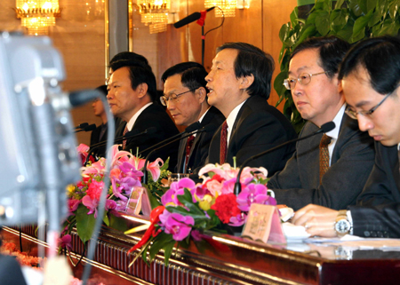 Press conference on economic and social development and macroeconomic regulation is held by the First Session of the 11th National People's Congress (NPC) at the Great Hall of the People in Beijing, capital of China, March 6, 2008. [Xinhua]