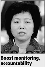 Accountability should be improved and administrative power more closely monitored, Li Lijun, a CPPCC member, said yesterday. "The accountability system should be considered integral to monitoring and controlling political power," Li, deputy director of Hunan's supervision department and a China Democratic League member, said. The system should cover not only government but public organizations and judicial bodies at all levels, he said. Accountability currently rests with one or just a few officials. But Li said responsibility should be shared by all those involved. The accountability system should not be seen as an alternative to the legal system, he said. China Daily (China Daily 03/10/2008 page7) |