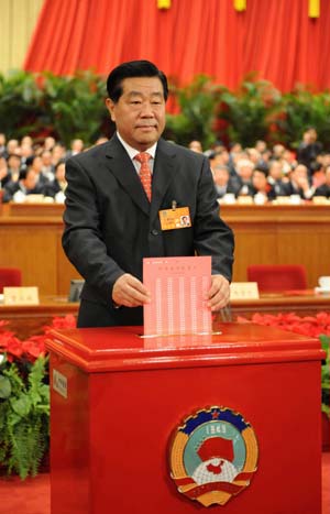(Xinhua) Updated: 2008-03-13 19:12 BEIJING -- The 11th National Committee of the Chinese People's Political Consultative Conference (CPPCC), the top political advisory body, on Thursday elected its leadership at a plenary meeting. Jia Qinglin was reelected chairman of the National Committee of the CPPCC.