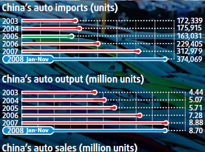 "Our door is always open for other opportunities to cooperate with foreign companies," Jin said in December. Chery exported 125,000 vehicles in the first 10 months of 2008, exceeding its exports for all of 2007. It plans to export 400,000 vehicles annually by 2010, the Xinhua News Agency said in a report. Its total export were $726 million and revenue reached $2.1 billion. This year the company predicts export will hit $900 million. Auto industry analysts said Chery still faces challenges such as improving quality to meet US and European safety and emissions standards. "Chinese cars will gain world recognition only when they possess the quality of European cars, service of Japanese cars and a price lower than anyone else," said Zhang Xiaoyu, vice-president of China Machinery Industry Federation. (China Daily 01/05/2009 page3) |