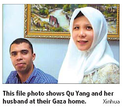Qu Yang is reportedly the only Chinese in Gaza, and has not left her home in days. Though unlike many Palestinians in the territory, she has stocked some food at home, she fears it will run out soon. Perhaps her greatest predicament is that the person for whom she moved to Gaza 13 years ago is in Shanghai. Qu met her husband, a Gaza-based Lebanese businessman, during his trip to Beijing in 1994. He was in Shanghai on one of his business trips to China when Israel launched the attack on Gaza 11 days ago. He is stuck there because he cannot return home. Qu spoke to China Radio International from her home in Gaza earlier. "I've not seen attacks of such scale," she was quoted as having said. "We underestimated the situation because Israel had been threatening to attack but it didn't do so earlier." Her deadliest experience was when she was walking back home after picking up her 5-year-old child from school on December 27 and a bomb hit a building a few hundred meters away, the Legal Evening News reported. "The building collapsed in seconds and I ran" blindly toward home thinking about the other two children. Qu could not be contacted yesterday because communication channels had collapsed. "No one dares to go out after the air raids," Beijing News quoted Qu as having said earlier. "Most of the shops are closed. We cannot get anything " Qu has moved from the second floor to the ground floor of her house for safety, and has been using her generator for electricity for the past six days after power supply was disrupted. Yang Weiguo, head of the Office of the People's Republic of China to the Palestinian National Authority, said they were in regular touch with Qu and had advised her not to leave the house. |