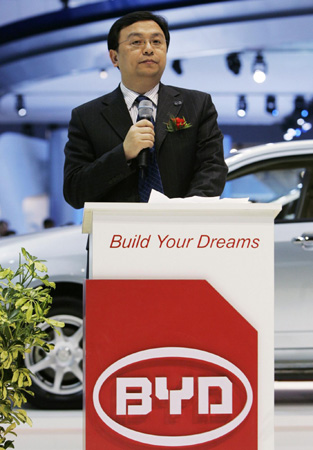 BYD (Build Your Dreams) president Wang Chuanfu speaks during the North American International Auto Show in Detroit, Michigan January 12, 2009.[Agencies] |