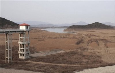 In this Jan. 21, 2008 file photo, a control tower stands on the Miyun reservoir, north of Beijing, China. The Yangtze River in South China is expected to provide 1 billion cubic meters of water every year to Beijing starting 2014, authority said. [Agencies]