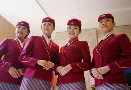 Flight attendants pose for the media before an inauguration ceremony for the first China Southern Airlines branch office in Taipei January 15, 2009. China Southern Airlines on Thursday said it was the first airline company from the mainland to set up a registered office branch in Taiwan. [Agencies]