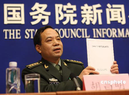Updated: 2009-01-20 11:33 China on Tuesday issued a white paper on national defense, pledging to be committed to the peaceful development and advance its military modernization. The paper for the first time unveiled China's ambition of "basically accomplishing mechanization (of the military) and making major progress in informationization by 2020" and "realizing modernization by the mid-21st century." The white paper on "China's National Defense in 2008" was issued by the Information Office of the State Council Tuesday. Vowing to strengthen the military by means of science and technology, the paper said China was working to "develop new and high-tech weaponry and equipment, conduct military training in conditions of informationization and build a modern logistics system in an all-round way." On China's military strategic guideline of active defense, the paper said this guideline "aimed at winning local wars in conditions of informationization."