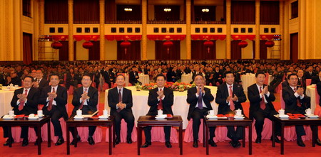 Chinese leaders attend a grand gathering held at the Great Hall of the People to celebrate the upcoming Spring Festival, or the Lunar New Year, and extend festival greetings to the Chinese people in Beijing, capital of China, Jan. 24, 2009. [Xinhua]