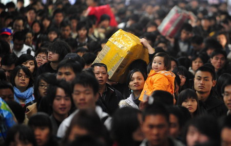 Not only did 1.3 billion Chinese bask in the festive atmosphere, some foreign nationals shared their feelings. UN Secretary-General Ban Ki-moon on Friday sent a message in Chinese, which read: "Happy New Year to the Chinese people and all the ethnic Chinese all over the world." Foreigners who chose to stay in China during the festival didn't need to prepare for family feasts, so many set off on domestic trips or found ways to enjoy folk culture. Migrant Workers' Wish For Huang Teng, 20, from a village in central Hunan Province, the term "economic crisis" has become only too familiar.