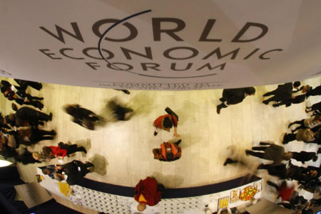 Attendees are pictured during a pause at the World Economic Forum (WEF) in Davos January 28, 2009. More than 40 heads of state and government, almost double the number last year, will be joined at the WEF meeting by 36 finance ministers and central bankers, including the central bank chiefs of all the G8 group of rich countries except the United States. [Agencies]