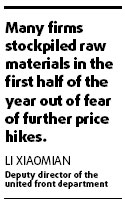 "Many firms stockpiled raw materials in the first half of the year out of fear of further price hikes," Li said yesterday.