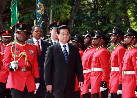 Echoing Hu’s comments on global financial crisis, Kikwete said the global economic downturn has created problems for Tanzania and other African countries. According to local newspaper The Citizen, the crisis is biting into businesses involving sisal processing and exports. Tanzania is taking every measure to overcome the difficulties, Kikwete said. And Tanzania is willing to strengthen cooperation so as to face off the crisis together. As the first Chinese president to visit Tanzania, President Hu Jintao arrived in Dar es Salaam late Saturday night. The official welcoming ceremony, which was held in the city hall square, featured the elite ceremonial military procession, during which the military band played both Chinese and Tanzania marches. Hu and Kikwete started their meeting by reviewing the 45 years of friendship that has proceeded smoothly and healthily and withstood dramatic changes in the world. The relations between China and Tanzania set a model of genuine mutual trust, unity and cooperation for the relations between China and Africa and among the developing countries, Hu said, thanking Tanzania for its successful hosting of the 2008 Beijing Olympics torch relay and above all, its steadfast support for one China. To strengthen the bilateral ties, Hu proposed to further enhance political exchanges to increase mutual political trust and deepen cooperation in the fields of businesses, trade, culture, education and public health. To fulfill the commitment China made during the Beijing Summit of China-Africa Cooperation Forum, China will share with Tanzania its experience in building economic development zones and keep up official support for Chinese businesses to invest in Tanzania. Hu also announced that China would invite young Tanzania students to visit China and offer more Tanzania students fellowships for them to study in China. |