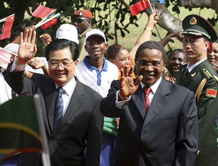 "As for problems that may arise from our cooperation, we want to properly resolve them through consultations with our African friends on an equal footing so as to maintain the larger interests of our friendly cooperation," he said. Hu said China want to forge closer links among young people, women, non-governmental groups, media organizations and academic institutions between China and African countries. He extended his support for African Union's participation in the G20 financial summit. China "wishes to take part in the formulation of international economic, financial and trade rules and build a more equitable and reasonable international economic order together with African countries," he said. Hu, who served for years as the top youth leader in China, extended his invitation to 50 students from Tanzania to visit China this year. Following are the six key areas that President Hu Jintao proposed for China and Africa to work together to cope with the economic difficulties. -- Strengthen solidarity and mutual assistance to jointly meet the challenge of the international financial crisis; -- Enhance mutual trust and cement the political foundation for traditional friendship; -- Raise the level of practical economic cooperation and trade on the basis of reciprocity and mutual benefit; -- Expand people-to-people exchanges and deepen cultural cooperation; -- Work closely together and strengthen coordination in international affairs; -- Enhance coordination and jointly promote the further development of the Forum on China-Africa Cooperation. |