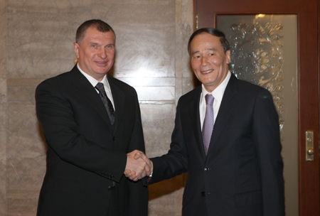 The agreement was signed by Vice-Premier Wang Qishan and Russian Deputy Prime Minister Igor Sechin in Beijing at the third round of energy talks between the two countries. "We hope the two sides will give full play to the bilateral energy negotiation mechanism to promote bilateral energy cooperation," Wang told Sechin. Sechin replied that the two countries should intensify cooperation in fields such as energy and finance, and make joint efforts to guarantee that the agreed projects are implemented on time.