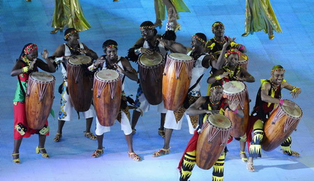 Artists perform prior to the opening ceremony of the 24th World Winter Universiade at Harbin International Conference, Exhibition and Sports Centre Gym in Harbin, capital of northeast China's Heilongjiang Province, Feb.18, 2009. [Xinhua]
