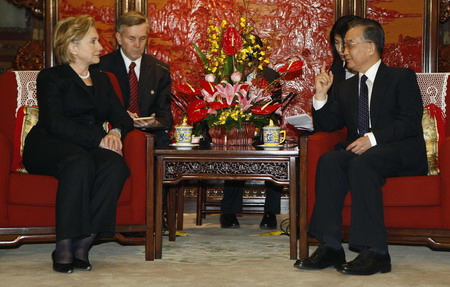 President Hu Jintao extended invitation to US President Obama to visit China at his earliest convenience. "I am looking forward to exchanging views with him on bilateral ties and issues of common concern," Hu said. Clinton noted that the Sino-US relationship has entered a new era of positive cooperation since the two sides share broad common interests on a host of fields and global issues. While pushing forward a US-China partnership on fighting the global warming, Clinton said she hoped the Chinese would avoid the kind of environmental "mistakes" that accompanied development in Western countries. Clinton said she and Chinese officials had agreed to develop clean energy technology that would use renewable sources and safely store the dirty emissions from burning coal.