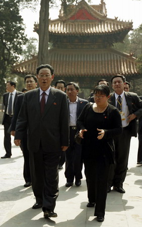 Premier of Democratic People's Republic of Korea (DPRK) Kim Yong-il (L) visits the Confucian temple in Qufu, east Chinas' Shandong province March 18, 2009. Kim arrived in Beijing Wednesday afternoon after traveling to Shandong Province as part of his 5-day official goodwill visit to China. [Agencies]