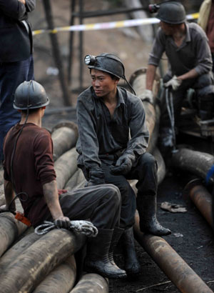 ![]() Miners wait for news about their trapped colleagues at a flooded coal mine in Sanjiaotang township of Changning, a city in central China's Hunan province, March 21, 2009. [Xinhua]