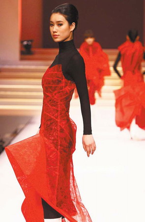 Young designers, who traditionally kickstart the Beijing fashion gala on the opening day, also paid tribute to New China's 60th anniversary. Most dresses flapping down the runway were one-piece concoctions, featuring straight cuts, cold and simple colors. "Simplicity is always in vogue, but this year it attracts more attention because of economics," Shi Zhiqiang, Time Out Beijing fashion editor, said last night. "China's fashion circle is not as influenced by the recession as those in the foreign countries, but we too won't see fancy garments with much embellishment in this year's fashion week." Despite being in its 12th year, China Fashion Week does not attract the industry's big names, such as Gucci, Louis Vuitton, or Dolce & Gabbana, the sort who dazzled Hollywood celebrities and the international jet set in New York a few weeks ago. However, unlike other international industry promotions, China's fashion foray not only features shows, but also contests, seminars and forums. Yesterday's Hempel Award, organized by China Association and Hempel International Group, attracted a fresh crop of young designers from 18 countries and regions. More than 40 fashion shows will be staged in Beijing over the next week, including the ones brought by Notting Hill Men's Fashion, Edenbo Business Casual Men's Wear, Lea Seong, Septwolves and Judy Galaxy. Spanish designer Nuria Monfort Juanda yesterday revealed a black, inner one-piece, featuring a decoration of small, white folding flowers. "My idea was to find the link between pattern and Origami," she said. Snow Lotus, a brand designed for people aged between 30 and 40, showed its upcoming collection of cashmeres last night at the Kerry Center. Cardigans and coats were collar-less but featured an A-placket. White, black, dark-blue and brown were the only colors used to express the spirit of the show: "simple is best". |