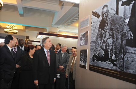 Foreign diplomats and representatives of international organizations visit the 50th Anniversary of Democratic Reforms in Tibet exhibition in Beijing, March 25, 2009. [Xinhua]