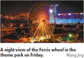 The 46,000-sq-m theme park was slated to open to the public during Spring Festival in February, but the date was postponed because some equipment failed to meet the Beijing Olympic Green Administration Committee's exceptionally strict safety requirements.