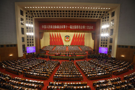 Updated: 2009-03-03 15:55 The Second Session of the 11th National Committee of the Chinese People's Political Consultative Conference (CPPCC) opens at the Great Hall of the People in Beijing, March 3, 2009. [Xinhua]